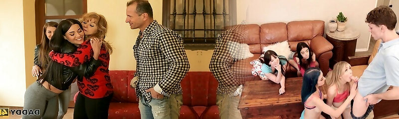 A couple of hungry brunette teens plead one brutal dude for hard ass fuck