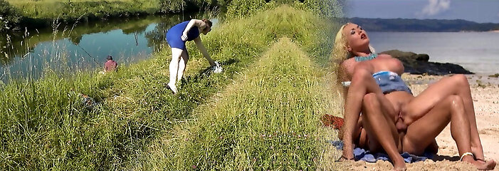 Insane beach. Sexy Milf Platinum naked sunbathing on river bank, random fisherman stud watches. Naked in public. Nude beach