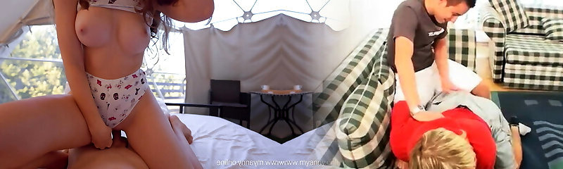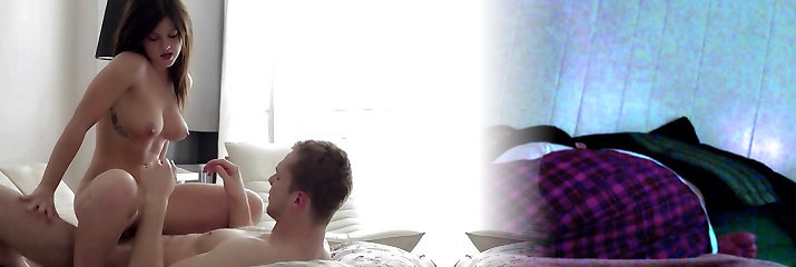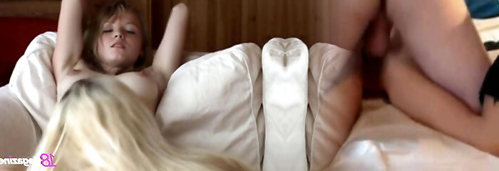 Horny guy fucks stepsister Alex More and her sex-greedy girlfriend