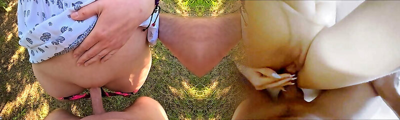 Enticed My Slim Neighbor Into Face-to-Face Quickie In the Yard & Filled Her Vulva & Panties With Cum