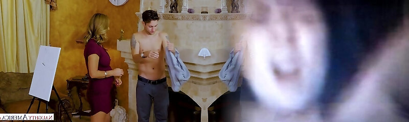 Tanned mature Brenda James gets intimate with one young dude