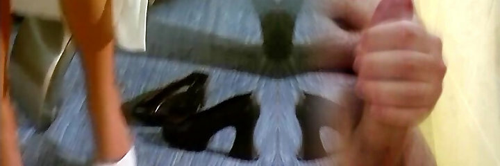 Chief secretly Jerks off to his Secretary and Cums on her Legs in Tights