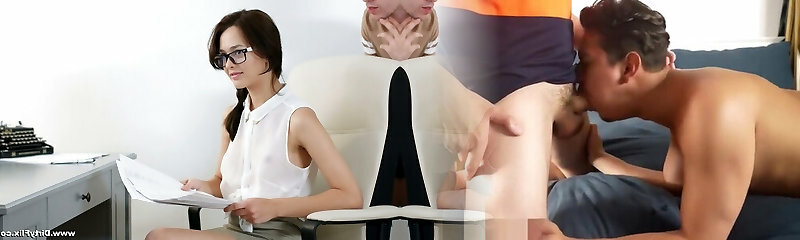 Nerdy secretary in glasses Michelle Can gets double boinked in the office