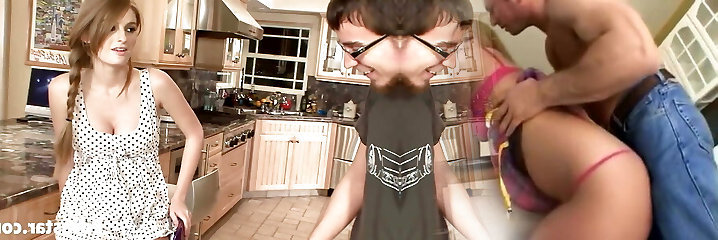 His sista licks his cum after an anal screw with girlfriend