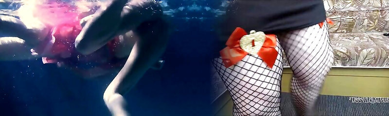 Two red-hot lesbians underwater touching eachother