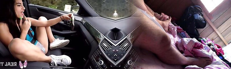 Hot brunette taxi driver girl seduces her client and begs him for some ass-fuck in the car