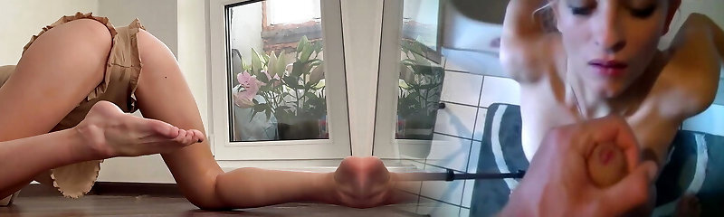 Flexible pale brunette with foot fetish does hot footjob