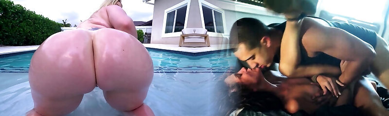 Jenna Starr having fun while sucking a black manstick in the pool