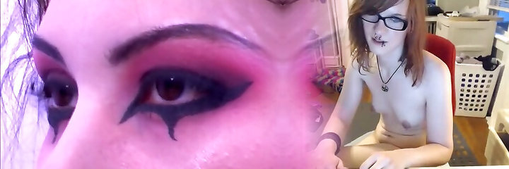 Cute goth nymph with beautiful makeup spreads her legs for fucking and gets jizm on her pretty face