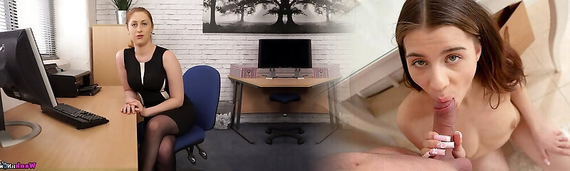 Horn-mad light haired secretary flashes her legs and masturbates herself