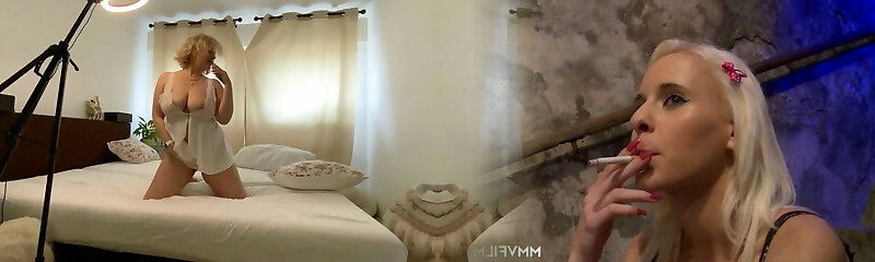 Striptease and Piss by plump Mature bare blonde outside in the garden courtyard