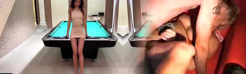 Hot brunette russian girl taunts her boyfriend with a striptease and then gets bent over the table and pummeled