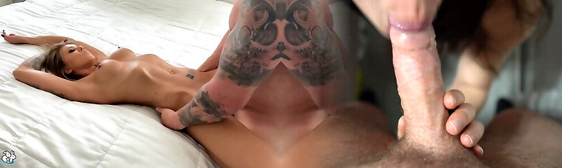 blonde tatoo girl with massive boobs rubbs her pussy
