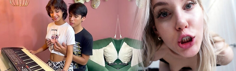 Handsome Lad Fucked His Cute Slender Latina Step-sis During Their Music Lesson