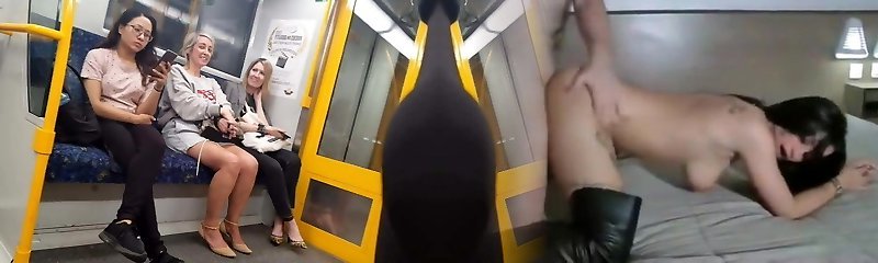 Amateur dark haired chick shows her donk and urinates in the public bus