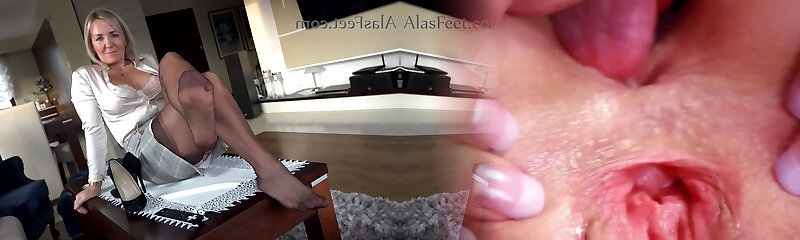 Legs Fuck and Female Dominance Handjob in Shiny Pantyhose and Heels