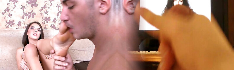 Chatty brunette Regina Moon has nothing against providing buddy a footjob