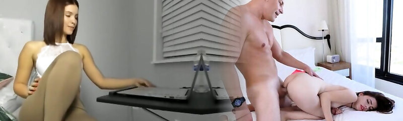 Sexy stepsister with pretty feet puts on her strappy undergarments to get fucked