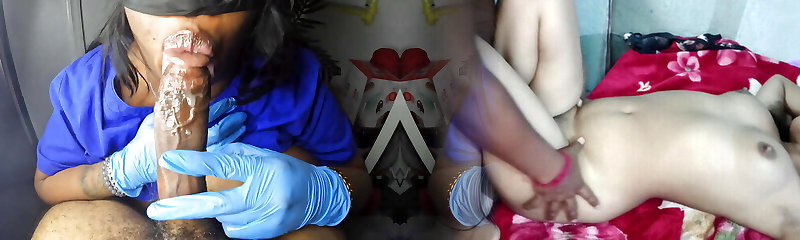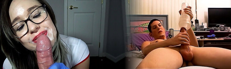 MILF nurse milks my cock while fingering my ass