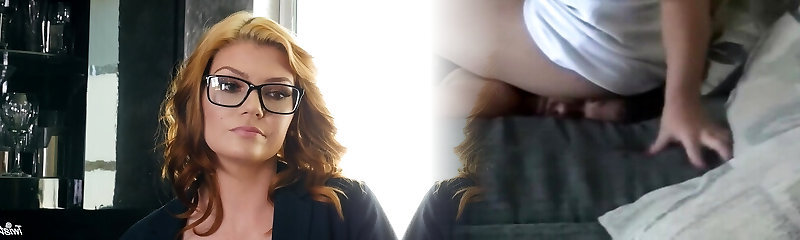 Redhead secretary with thick boobs was caught by her boss with porn videos