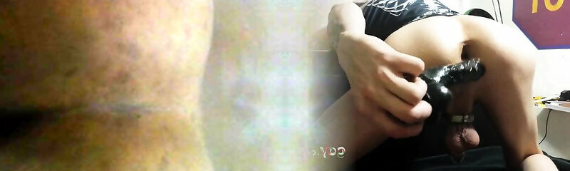 While having huge dark-hued toy into anus slutty Dahlia Sky rides strong bone