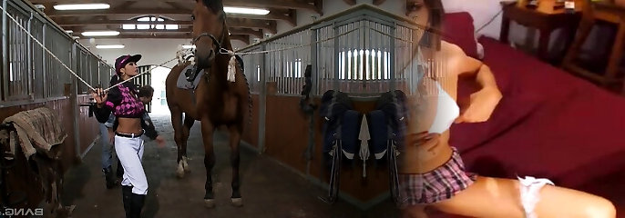 Attractive brunette cheerleader with a sublime donk rides a lengthy stick