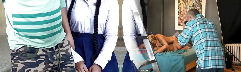 Slim Fla-chested Blonde Scout-girl Dez Hansen Asked an Old Doctor Jay Squad To Breed Her